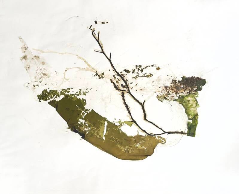 These unique A1 prints were created by pressing the seaweed through large printmaking press. The process left the preserved seaweed pressed into the paper & released natural dyes to creates unusual textured prints.